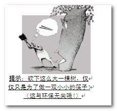 (3)示例:我推荐这幅漫画,它构思巧妙,寓意深刻。砍掉一棵参天大树,只是想做一双小小的筷子。警示人们要物尽所值,不要大材小用。(2分。从构思、寓意等角度,结合画面内容,言之成理即可)
