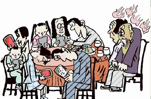 材料二 70岁老汉吴民对来拜年的外孙女一家说:“这个春节,不需要你们给我钱,也不用买啥营养品,只要你们交出手机。”第二天,社区居委会就吴民“没收手机”一事对市民作问卷调查,其中60%的年轻人承认,给长辈拜年时,大多数时间在玩手机。
