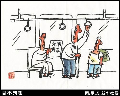 (3)班级召开“学习雷锋,我在行动”的主题班会。班会上,有同学出示了右面这幅题为“目不斜视”的漫画,引发了大家的热议。看了这幅漫画,你有什么感想呢?请写出。(2分)