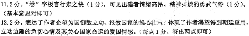12.“会挽雕弓如满月,西北望,射天狼”是词中的名句,从中可以看出词人怎样的情感?(2分)