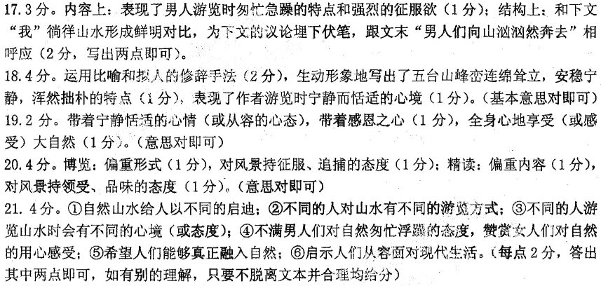 21.请结合全文,说说文章以“仁山智水”为题有哪些深刻内涵。(4分)