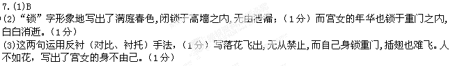(2)试分析第二句中“锁”具有的表现力。(2分)