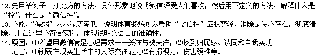 ⑤如何才能降低对微信的依赖度呢?首先,要认识到这些网络工具之所以被研发出来,是为了更好服务人类,而不是用来控制人类;其次,应强制自己合理有度地使用网络工具,将更多的时间用在与周围人的面对面交流上;另外,加强体育锻炼也可帮助减弱“微信控”。