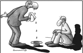 20.请观察下面以“深表同情”为题的漫画,描述其内容,并指出其寓意。(4分)
