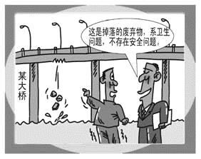19.(1)画的正中是一座桥,桥梁有石块脱落,一个人看到后十分惊恐,指给另一个领导模样的人看,领导却闭着眼睛说:“这是掉落的废弃物,系卫生问题,不存在安全问题。”
