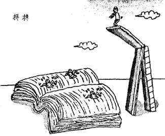 17.(6分)〔答案示例〕一个人站在用巨大书本支撑起来的高台上,做出准备跳水的姿势,然而他看到下面的书海里有许多人在水中“拼搏”。(3分)此漫画寓意是读书跳不出书本就会被书本知识淹没。(3分,意思对即可)(如有其它解读,只要言之成理,亦可酌情给分。)