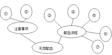 【注】文本框中填入的内容是:①献血前,不吃油腻食物、不饮酒;②献血后,个人活动要适度;③领取登记表;④量血压;⑤检验血型;⑥采血,休息5分钟;⑦交表并登记,领取献血证及纪念品。