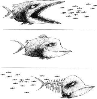 20.说明部分要求语言简洁、连贯,层次清晰。这幅漫画可以读出了两个层面的寓意:其一是团结起来力量大,以弱胜强不是神话;第二层含义在于此画教给我们看问题要学会历史地看,一时一地的胜负并不能说明什么,笑到最后才是真正的赢家。有其他言之成理的寓意亦可酌情给分。(说明12分,寓意3分)