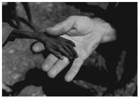这是一幅反映非洲大饥荒的照片,曾经在全世界引起强烈反响。照片中两只手的主人分别是一位儿童和一位神父。