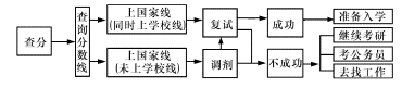 21.考生查分后,查询分数线。同时上国家线和学校线的考生进入复试,复试成功则准备入学。如考生仅未上学校线,通过调剂可参加复试。所有考研不成功的考生可以选择其他路。(6分)