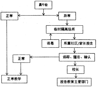 通过晨午检,正常的就正常教学。异常的安置在临时隔离场所,待所属社区或家长接走后对该场所消毒;之后追踪、随访,确认恢复正常后回归教学,并向校长汇报,校长将该情况向教育主管部门报告。