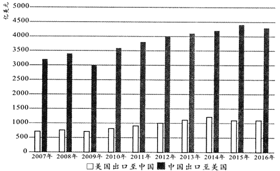 (1)概述近十年来中美两国间进出口贸易的整体情况。(3分)