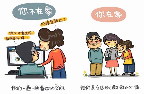 17.下面是被称作“直戳泪点”的原创手绘图画《世界再大也要回家》中的两幅,请围绕“牵挂”写一段话。要求感情真挚,运用两种修辞手法。不少于60字。(6分)