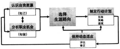 21.撰写生涯规划首先要知己知彼,认识自我资源和分析职业机会;然后要选择生涯路向,从任务、策略、进度三方面来制定行动计划;最后要对生涯路向和行动计划进行评估修正,以保持动态适应。