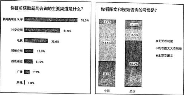 A.材料二中的调查数据显示,在目前获取新闻资讯的主要渠道中,传统媒体已经完全不具备和新媒体抗衡的能力。