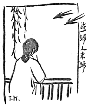 17.请根据丰子恺先生的《燕归人未归》这幅画,围绕“等待”描写一个场景。要求:①想象合理;②运用两种修辞手法;③字数不超过100字。(6分)
