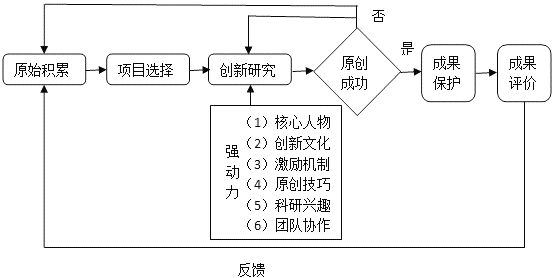 21.创新研究从原始积累开始,然后选择项目开展研究。(1分)研究过程有六种强动力作保障。(1分)如果原创成功,就要对成果保护,进而做出评价和反馈。(2分)如果原创失败,就要重新研究,或者从头开始。(2分)(超出字数,在所得分数中减去1分)