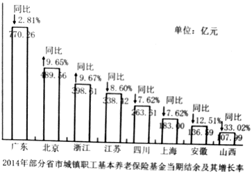 ②大部分省市城镇职工基本养老保险基金当期结余增长率下降。(1分)