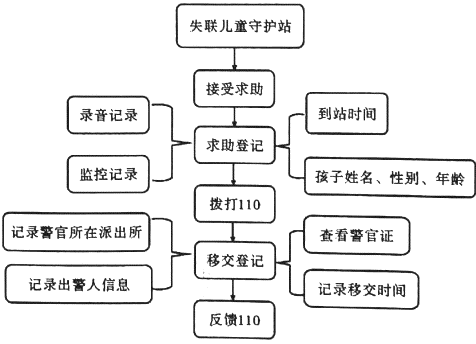 21.下图是失联儿童守护站的工作流程图,请将该工作流程图改写为一段话,要求内容完整、表述准确、语言连贯,不超过110个字。(5分)
