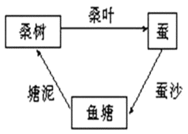 本题考查学生图文转换能力。从整个图形来看,这是一个循环的过程,所以先要确定好起点。从标题“桑蚕立体养殖图”和整个流程图来看,鱼塘应为循环的起点,然后按照循环的顺序,概述全面,要注意语言连贯性,字数的限制等。