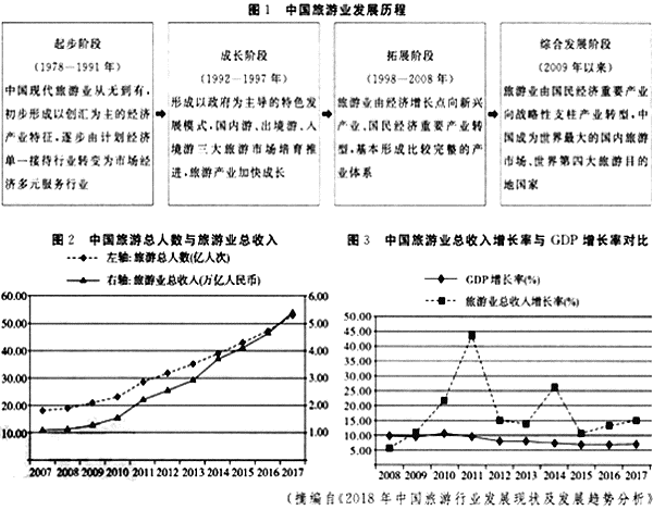 A.由材料一的图表可知,2007-2017年的11年间,我国旅游总人数和旅游业总收入均呈现出逐年增长的趋势,且二者之间基本呈正比例关系。