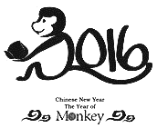 17.下图是某人设计的猴年会意书法作品,请写出除英文以外的构图要素,并说明图形寓意。要求语意简明,句子通顺,不超过80个字。(5分)